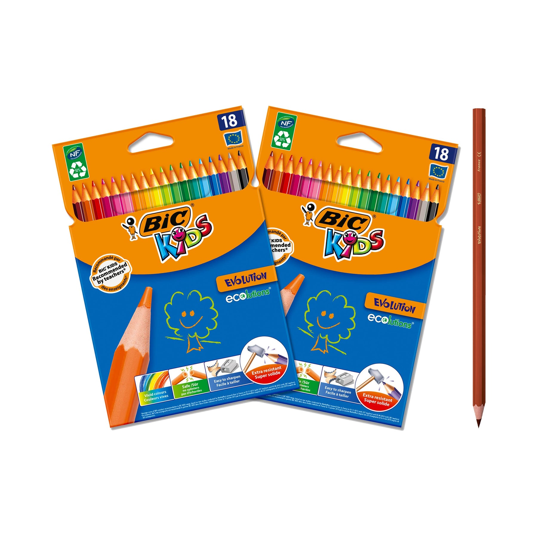 BIC Kids Evolution Ecolutions Coloured Pencils - 18-Pack, Eco-Friendly, Ages 5+