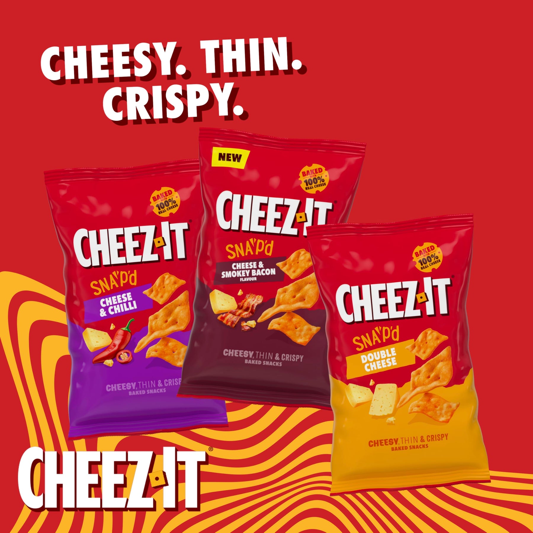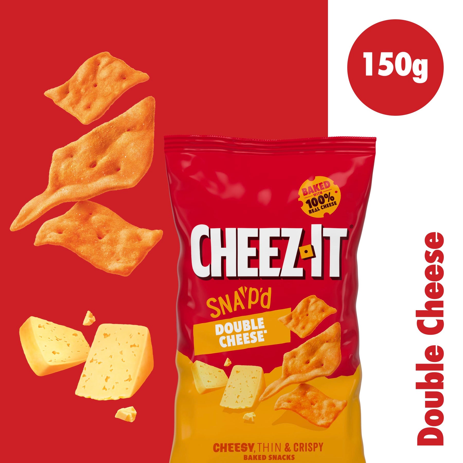 Thin and crispy baked snacks packed with the bold flavor of double cheese. Made with real cheese (4.2%) and enhanced with cheese seasoning, these savory bites deliver a rich, cheesy taste in every crunch. Perfect for lunchboxes, on-the-go snacking, or pairing with your favorite dips.