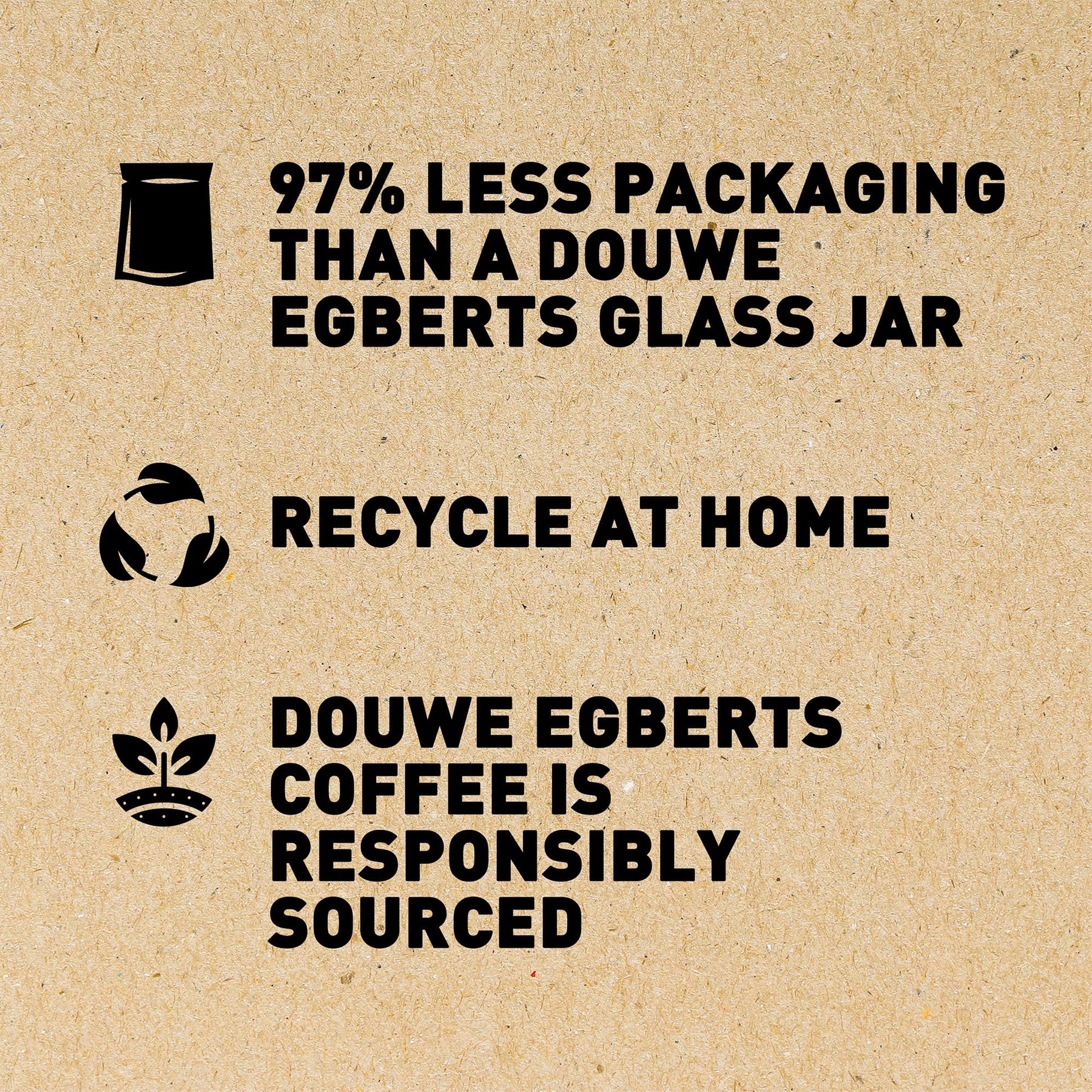- Reduces packaging material by 97% per gram of coffee compared to the 190g glass jar & lid