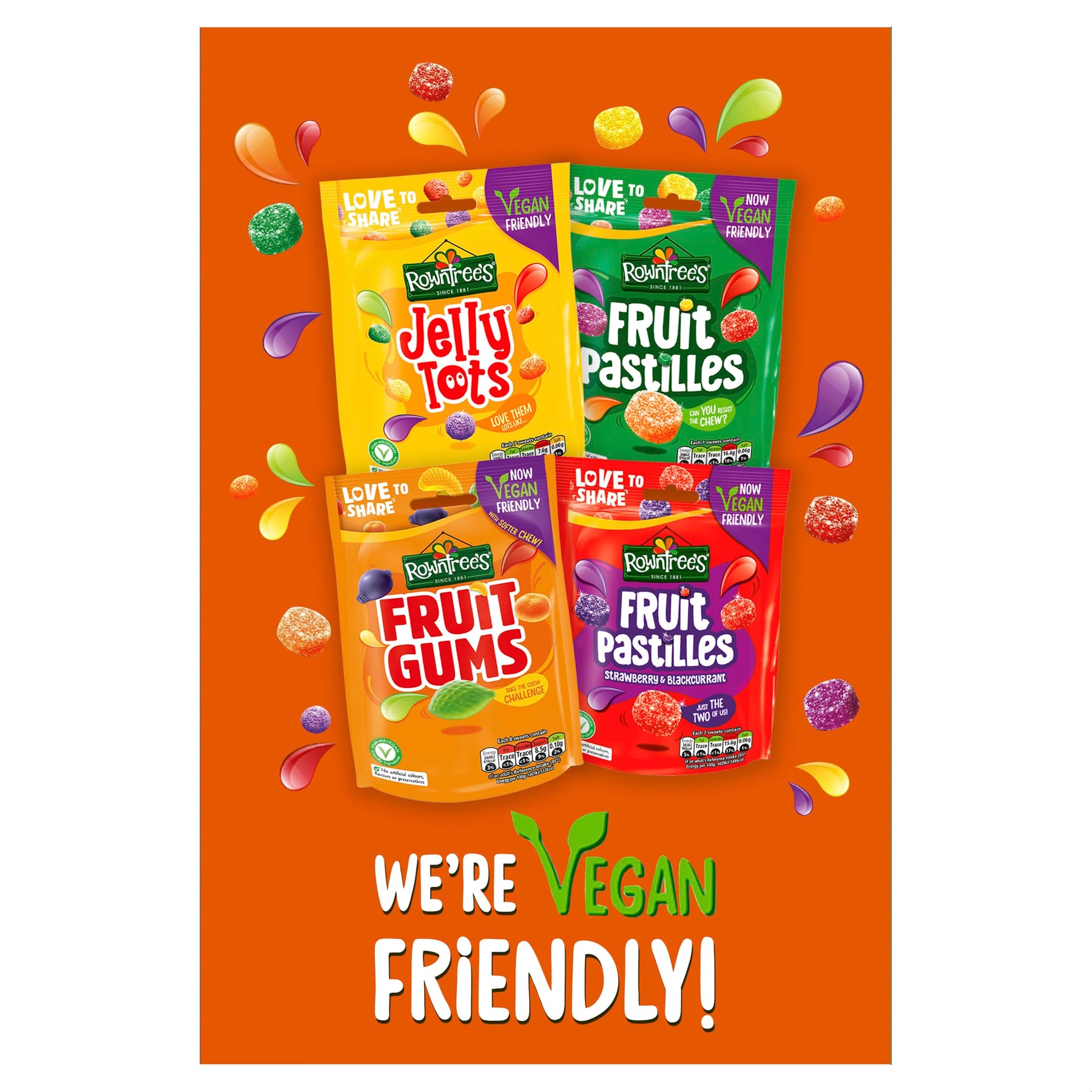 - Assorted fruit shapes and flavours: blackcurrant, lemon, strawberry, lime, and orange