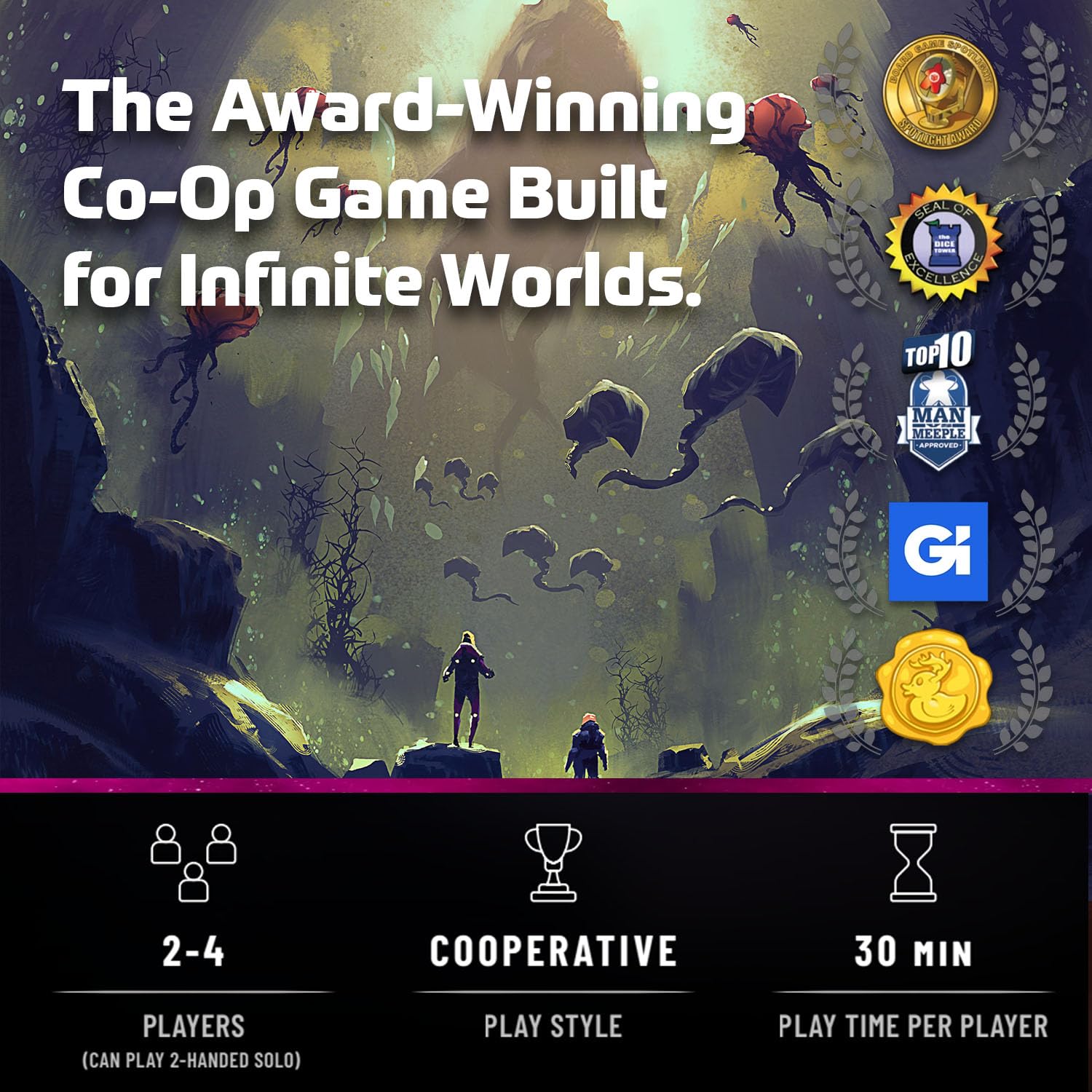 - Procedurally generated challenges and alien environments
