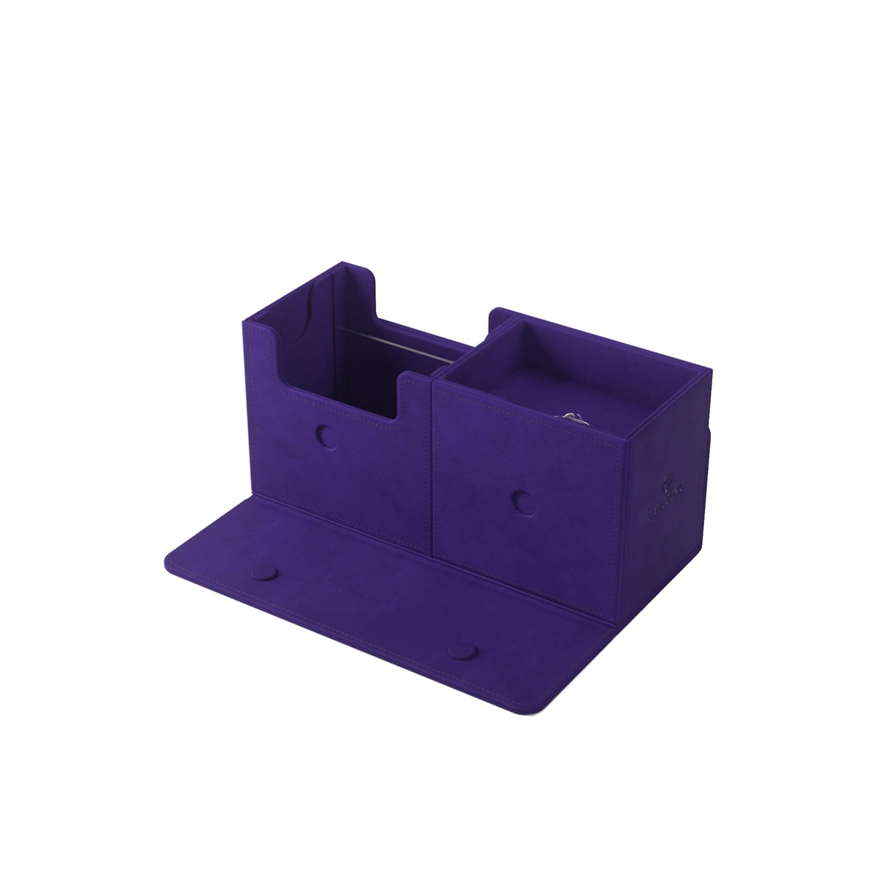 • Features two removable hidden drawers with magnetic flaps, each storing 40+ double-sleeved or 52 single-sleeved cards